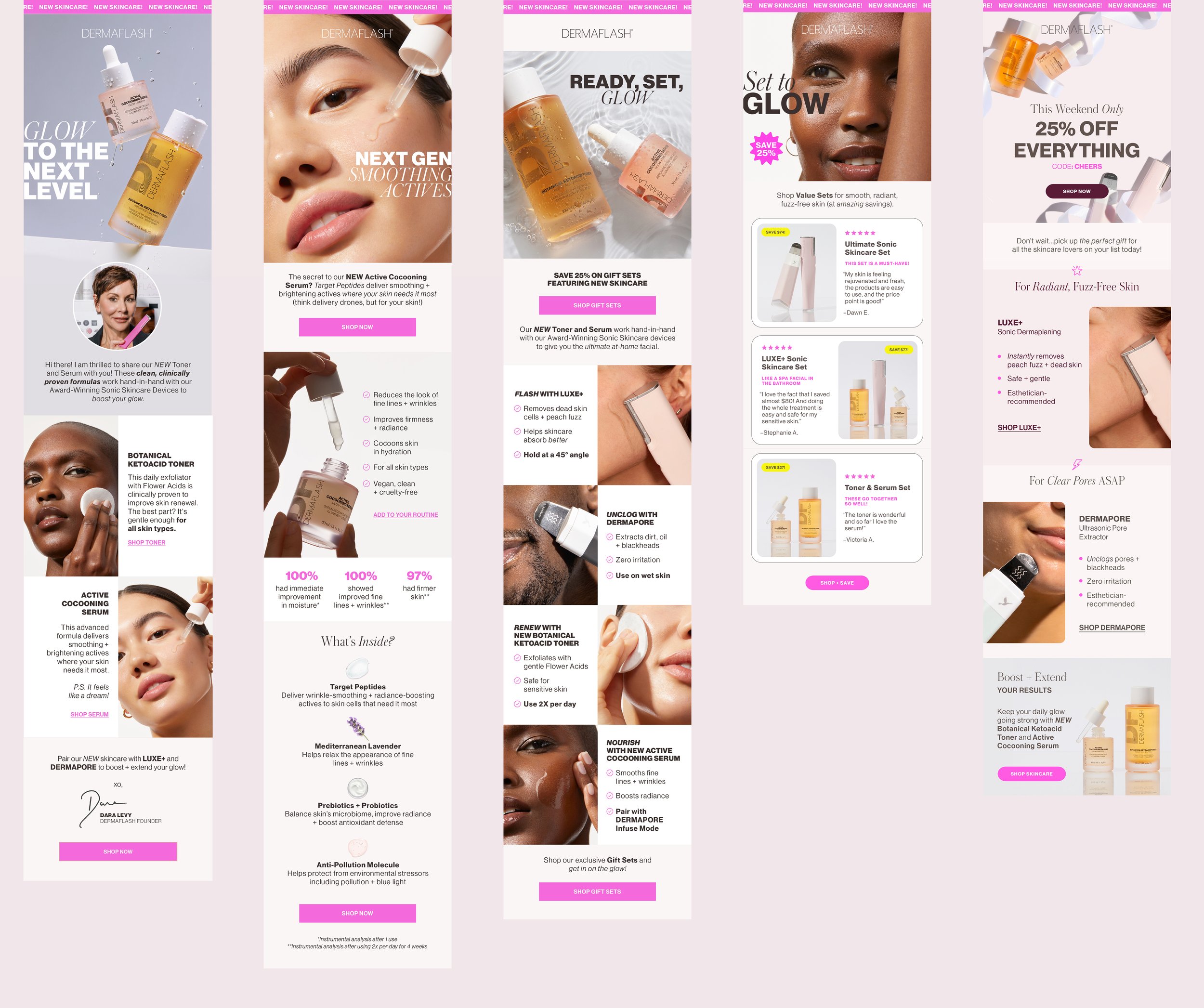 As a Designer + Art Director for Dermaflash, I led impactful projects for paid media and organic social campaigns, ensuring a consistent visual identity across packaging and in-store displays for major retailers like Ulta and Sephora — helping them launch multiple products during my time spent with them.